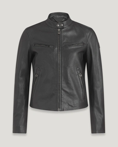 The Pine Jacket in black. Clean lines and exposed polished hardware echo classic moto styling on this supple nappa leather jacket. Belstaff`s leather products support responsible manufacturing via the Leather Working Group.