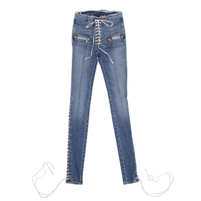 BEN TAVERNITI UNRAVEL PROJECT Denim Cotton Lace Up Skinny Jeans Pants - Blue