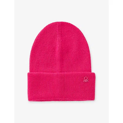 BENETTON Kids' Pink Logo-plaque Wool Blend Beanie 8 In Blue