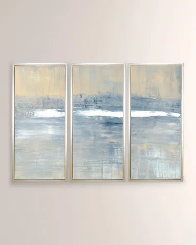 A set of three abstract canvases layered in a palette of butterscotch, bluegray, blue, and white. This gicleé artwork set is by artist Carol BensonCobb. Handcrafted giclee on stretched canvas in a wood frame Hangs vertically Approx. 21"W x 2"D x 46"T Includes hanging hardware Hanging method: drings Made in USA Set of three Weight, 35.0 lbs Boxed weight, approximately 40.0 lbs
