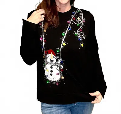 The ultimate go-to sweater, expertly crafted to provide the perfect combination of warmth and style. Its classic design and soft fabric make it a must-have addition to your wardrobe.Get ready for the holidays with the Swinging Snowman Fun Sweater by Berek, perfect for bringing festive cheer. This women's long sleeve sweater offers a comfortable fit with its cotton blend composition of 95% cotton and 5% spandex. A playful snowman graphic adorns this crewneck style in a sleek black color. Closure - Pull-on. Care - Hand wash cold inside out, do not bleach, do not twist or wring, lay flat to dry, iron on low heat, avoid direct heat on stones/beads, do not dry clean.