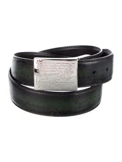 Berluti Belt Kit Black & Green Leather Silver-Tone Hardware Peg-In-Hole Closure Includes Dust Bag Unfortunately, due to restrictions, this item may not be eligible for shipping in all areas. | Berluti Leather Belt Kit in Black/Green, Men's M
