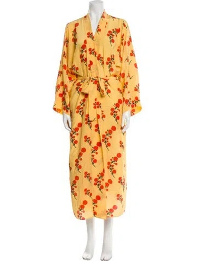 Pre-owned Silk Printed Robe In Yellow