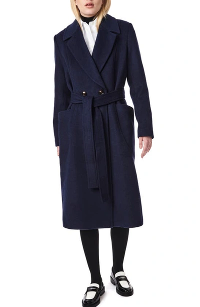 BERNARDO Belted Wool Blend Longline Coat In Deep Navy