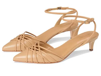 Bernardo Minu - Women's Shoes : Dune : Flattering lines, standout shine. The Bernardo Minu sandals feature delicate, intertwining straps that create a sleek, flattering silhouette. They are designed with a leather upper, insole, and lining. The ankle strap with an adjustable closure ensures a secure fit. These heeled sandals are styled in a monotone metallic design to elevate your look with some texture and dimension. ; Pointed toe silhouette. ; Kitten heels. ; Leather outsole. ; Made in Brazil. Measurements: ; Heel Height: 2 in ; Weight: 7.65 oz ; Product measurements were taken using size 7, width M. Please note that measurements may vary by size. | Bernardo Minu Women's Shoes Dune : 7.5 M, Leather