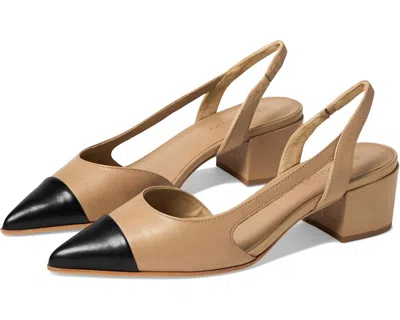 Flowy dresses, cropped pants, and even jumpsuits.this sandal works with them all!Step into sophistication with the Monroe Slingback Sandal by BERNARDO, crafted to take you from work to happy hour seamlessly. This sandal showcases a two-tone design in Sand Antique Calf and Black Patent, coupled with a pointed toe and block heel for added stability. Made in Brazil, its upper and insole boast soft vegetable re-tanned leather, complemented by a vegetable tanned leather sole that offers flexibility and a non-slip grip. Featuring a 1.75" covered heel, it embodies premium materials and craftsmanship for sustainable, long-lasting wear, perfectly suited for minimalist springtime dinner parties.