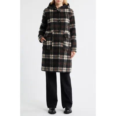 Toggle closures and a trad plaid bring nostalgic appeal to a hooded coat cut from a fuzzy wool-kissed blend. Front toggle closure Fixed hood Dual-entry flap pockets Lined 68% polyester, 25% wool, 4% viscose, 3% other fibers Dry clean Imported