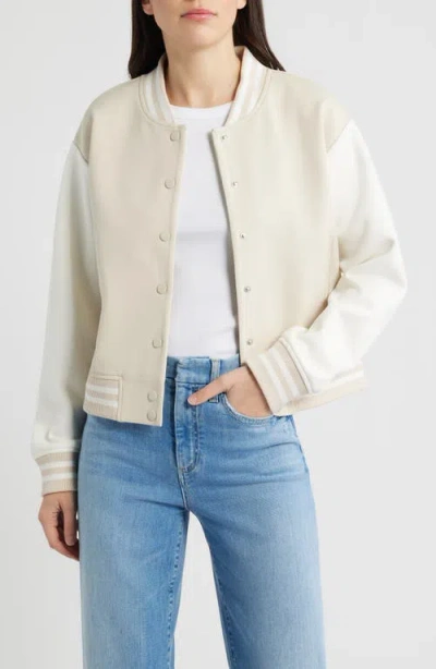 Pull together your weekend style with the sporty vibes of this classic varsity jacket. Front snap closure Blade collar Front welt pockets 94% polyester, 6% elastane Machine wash, tumble dry Imported