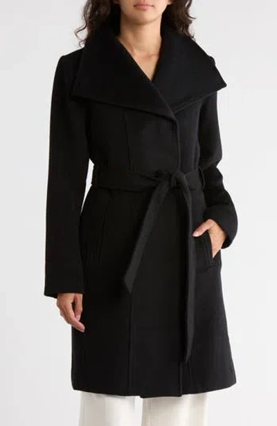 BERNARDO Wool Blend Wrap Coat In Black