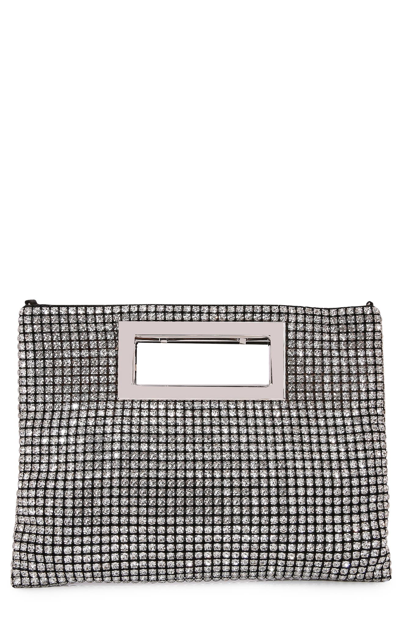 BERNESS Rectangular Top Handle Rhinestone Clutch In Silver