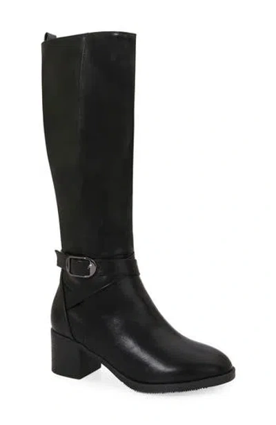 A round toe and block heel balance a buckled knee-high boot fashioned with a side zipper for easy entry. 2" heel 14" shaft; 15 1/2" calf circumference Inset side-zip closure Synthetic upper, lining and sole Imported