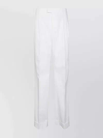Pleated design | Cuffed hem | Belt loops | Back pockets | Concealed fastening