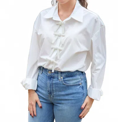 Perfectly tailored and soft to the touch.Introducing the Bow Button Down by BEULAHSTYLE, a sophisticated piece perfect for travel and Thanksgiving gatherings. This long sleeve shirt in a solid white design features a classic collar and a charming bow, adding a vintage touch to your fall wardrobe. Crafted with meticulous attention to detail, it offers a button closure for convenience. It's an ideal choice for those seeking a stylish yet understated look.