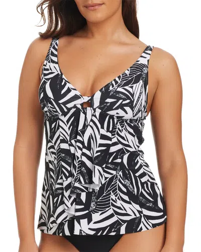 Introducing the Beyond Control Swimwear Sharp Observations Cascade Tankini, a stylish and trendy addition to your swimwear collection. This tankini features a sleek black and white color/pattern, with a flattering plunge neckline and front cascade design. The adjustable straps ensure a perfect fit, while the 70% Nylon and 30% Spandex fabric blend offers comfortable control. The lining, made of 78% Nylon and 22% Spandex, adds extra support. Hand washable and imported, this tankini is a must-have for your next beach or pool day.