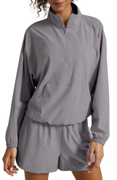 BEYOND YOGA In Stride Half Zip Pullover In Cloud Gray