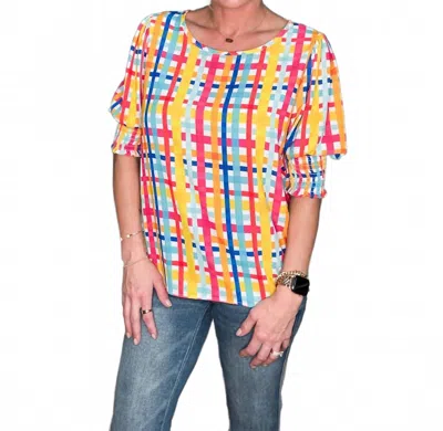 Pair this with your favorite jeans and slides for your next girls night out.Introducing the Spring-time Magic Top by BiBi, a vibrant plaid & check blouse perfect for refreshing your spring wardrobe. Designed exclusively for women, this top features a classic crewneck and stylish short sleeves. Made to stand out, its multi-colored pattern complements any look without the need for pockets. Celebrate the Easter season with this unique must-have piece.
