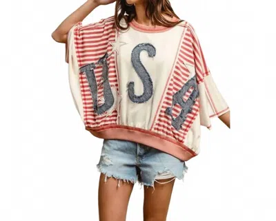 BIBI Washed Denim U. S.a. Patchwork Stripe Top In Multi