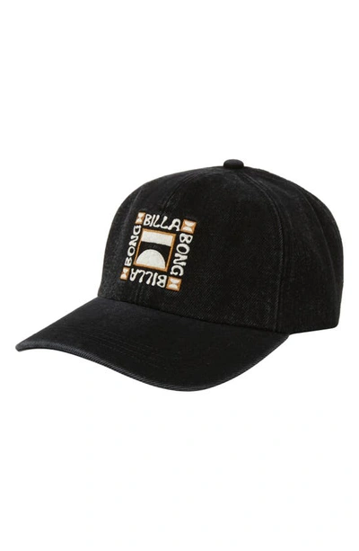BILLABONG Embroidered Logo Cotton Twill Baseball Cap In Washed Black