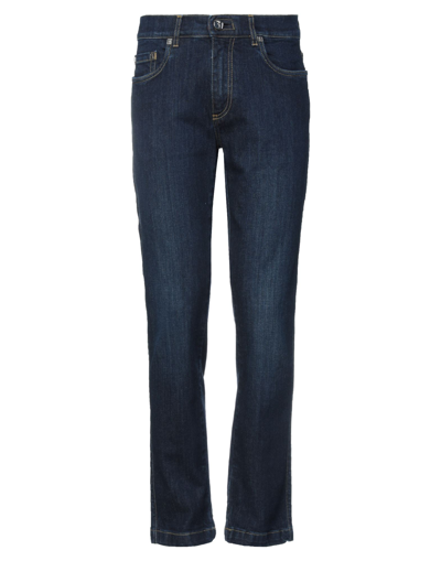 denim, metal applications, brand logo, solid color, mid rise, dark wash, tapered leg, belt loops, regular fit, 1 button, zipper closure, five pockets, stretch , Color: Blue , Size: 30