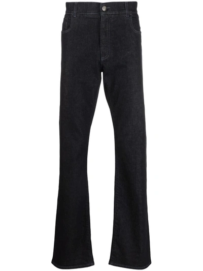 Indigo blue cotton regular-cut jeans from BILLIONAIRE featuring straight leg, logo patch to the rear, belt loops, front button and zip fastening and classic five pockets.