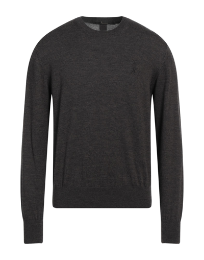 knitted, lightweight knit, embroidered detailing, brand logo, solid color, round collar, long sleeves, no pockets, mélange , Color: Dark brown , Size: XL
