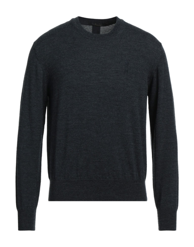 knitted, lightweight knit, embroidered detailing, brand logo, solid color, round collar, long sleeves, no pockets, mélange , Color: Steel grey , Size: 3XL