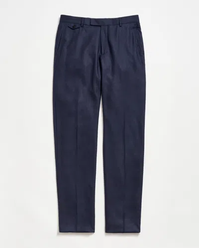 Our Flat Front Trouser, crafted in Italy, is a slim-fit trouser constructed from a blend of silk and virgin wool in classic dark navy – a soft, luxurious fabrication that wears beautifully all year long. It features two front slash pockets, one waistband watch pocket with a button flap, two rear welt pockets with button tabs, belt loops on the waistband, and our heirloom ribbon stripe detailing on the interior waistband for a subtle signature detail. Pair the Flat Front Trouser with its matching Archie Jacket for a complete look. This silhouette is also available through our custom program. This trouser is slim fit through the hip and thigh with a slim leg. Size up for a more relaxed fit. Fully customizable fit when working with a tailor. Model is 6'2" wearing size 32.