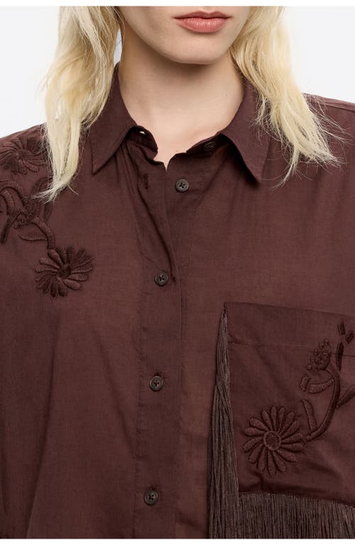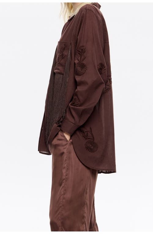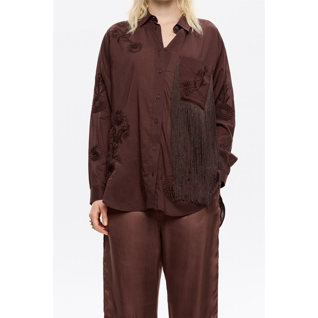 BIMBA Y LOLA Embroidered Fringed Shirt In Brown