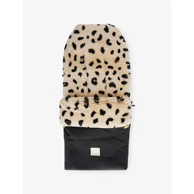 BINIBAMBA Babies' Leopard Puff Muff Sheepskin Pram Footmuff In Multi