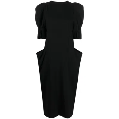black wool blend mock neck V-back short puff sleeves two side patch pockets straight hem mid-length. Colour. : Black. Composition. : Outer Composition Polyamide: 2.0%, Lining Composition Cupro: 100.0%, Outer Composition Wool: 94.0%, Outer Composition Elastane: 4.0%. Country Of Manufacture. : Portugal. MPN. : 11415760999. .