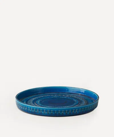 Bitossi's bolo centrepiece dish is a member of the italian brand's iconic rimini blu ceramic series each glazed a distinctive blue, and decorated with a frieze of abstract geometric imprints. Bitossi has been producing the rimini blu series for 60 years a true touchstone of italian home interiors, each piece from the collection is handmade by skilled craftspeople in italy according to heritage techniques. The series was originally designed by aldo londi, who used to fill his pockets with little implements like wires, screws and nails to produce their intricately imprinted detailing. This ceramic dish is treated with a vibrantly glossy blue glaze an eye-catching piece for a bookshelf, desk or side table.