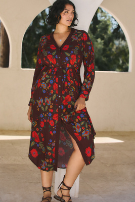 Petite and plus exclusive Viscose Button front Machine wash Imported Rikke Long-Sleeve Button-Front Midi Dress by Bl-nk, Women's, Size: 2 X, Viscose at Anthropologie