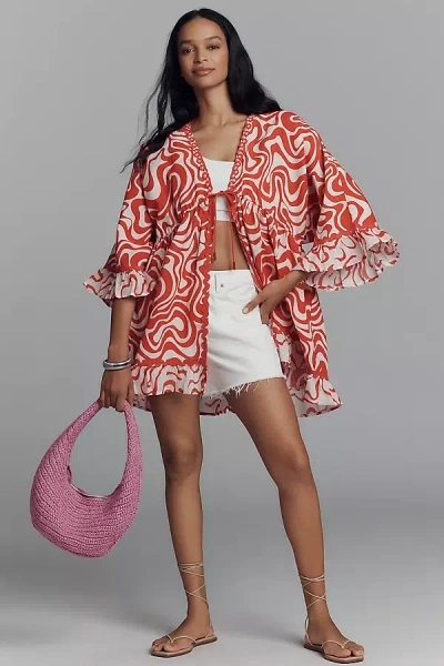 Cotton, linen Tie front Hand wash Imported Tie-Front Cotton Linen Shawl Jacket by Bl-nk in Red, Women's, Cotton/Linen at Anthropologie