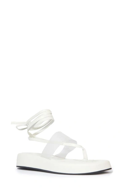 BLACK SUEDE STUDIO Flatform Ankle Strap Sandal In White Leather