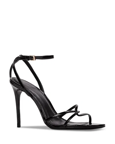 Round toe multi-strap sandals, set on a pin stiletto heel. Heel Height: 100mm / 4'' Patent Leather Imported. Lsd Shoes - Shoes Lsd Mp > Black Suede Studio > Saks Fifth Avenue. Black Suede Studio. Color: Black Patent Leather. Size: 12.
