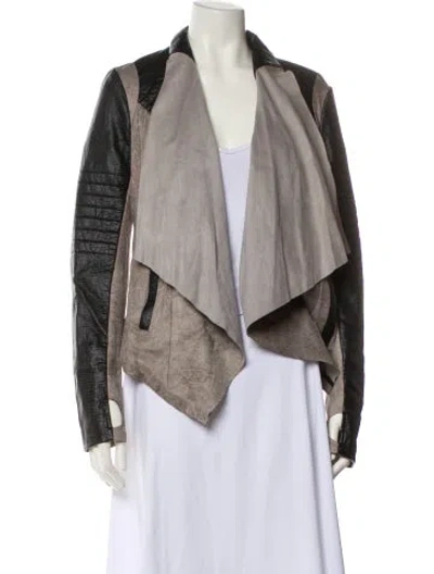 Blanc Noir Jacket Grey Colorblock Pattern Leather Trim Embellishment & Shawl Collar Slit Pockets & Open Front Fit: Jackets by Blanc Noir typically fit true to size. | Blanc Noir Colorblock Pattern Jacket in Grey, Women's L