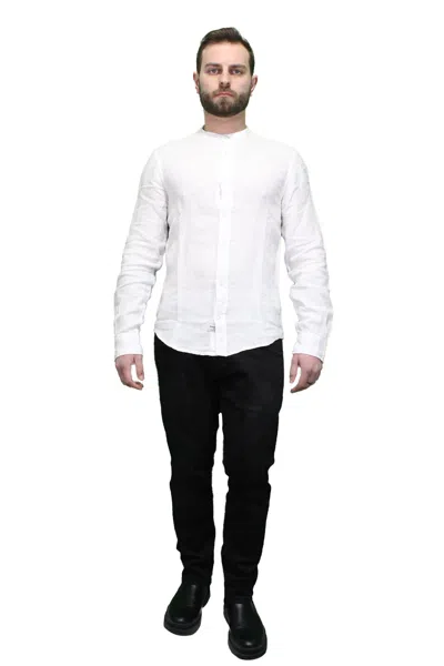 BlauerMen's linen shirt with Korean neckline and central closure with buttons, logo applied sideways, long sleeves adjustable on the wrists.Composition100% Lino