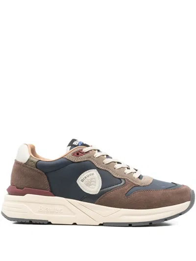 BLAUER Leather Panel Sneakers In Blue