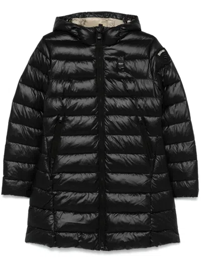 navy blue ripstop texture padded design quilted front zip fastening high neck drawstring hood logo patch at the chest long sleeves logo patch at the sleeve two side zip-fastening pockets internal patch pockets full lining straight hem