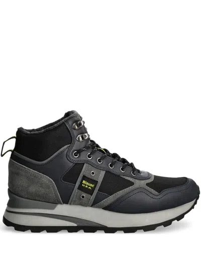 anthracite grey front lace-up fastening ridged rubber sole logo pull-tab at the heel padded ankle