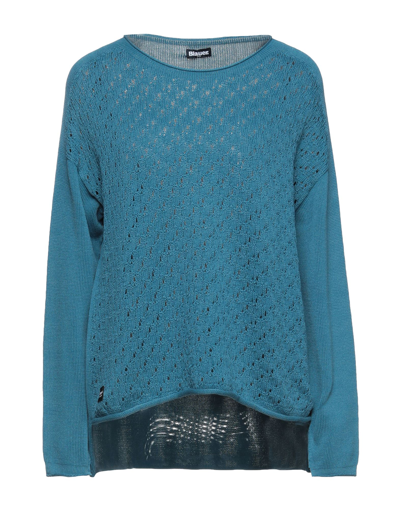 BLAUER Sweaters. knitted, lightweight knit, brand logo, solid color, round collar, long sleeves, no pockets. 100% Cotton