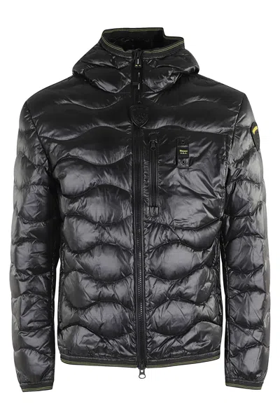 Wave down jacket - Blauer - Black color - Quilted fabric - Down lining - Hood - Flush chest pocket - Front zipper closure
