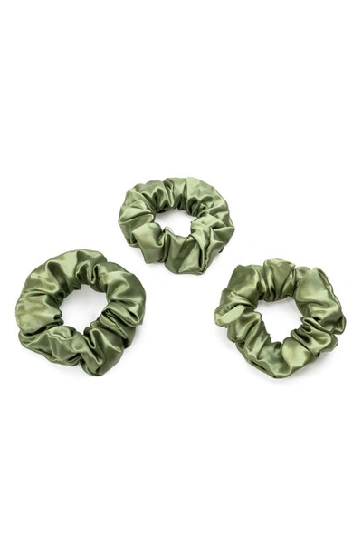BLISSY 3-pack Silk Scrunchies In Olive