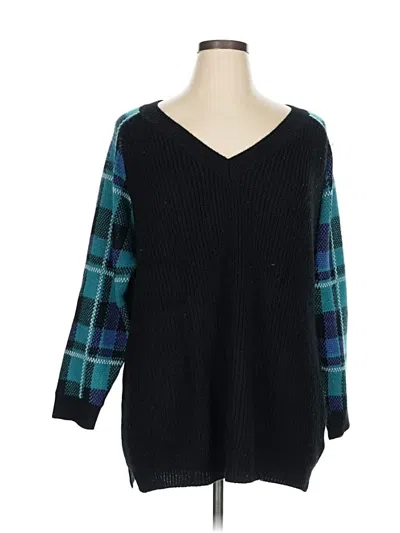 BLOOMCHIC Pullover Sweater, Size: 14. Item Details: Blue, Plaid Pattern, V Neck, 3/4 Sleeve, Flannel, Women's Tops, 100% Acrylic