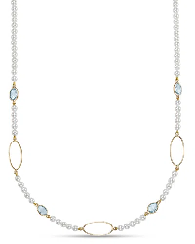 Freshwater Pearl & Blue Topaz Oval Link 18 Collar Necklace In 14k Yellow Gold In Multi