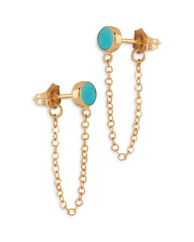 Turquoise Cabochon Oval Front To Back Earrings In 14k Yellow Gold In Blue
