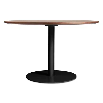 Easy does it. Breakfast, lunch, dinner or whatever. An uncomplicated pairing of a beefy steel pedestal and a warm walnut top. Available with either matte black or matte white base.
