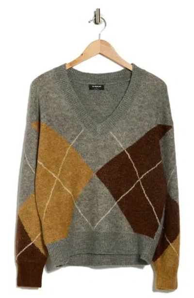 Argyle V-neck Pullover Sweater In Gray
