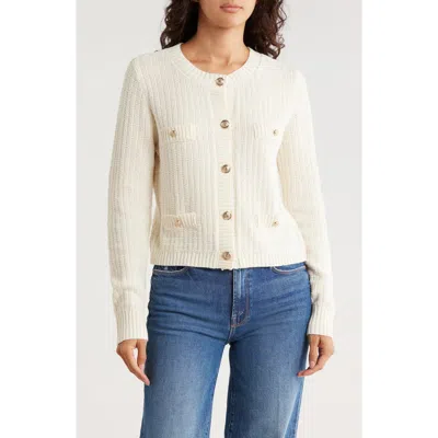 Gleaming buttons enhance the countryside charm of this cozy cardigan sweater styled with a crewneck and patch pockets for effortless layering. 19 1/2" length (size Small) Button front closure Long sleeves 60% cotton, 40% acrylic Hand wash, dry flat Imported