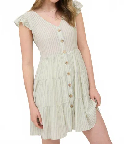 BLU PEPPER Stripe V Neck Button Down Tiered Mini Dress In Light Olive In Green